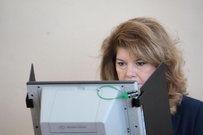Президентът Илияна Йотова упражни правото си на глас в СПГЕ „Джон Атанасов“ в София. Тя гласува с машина.