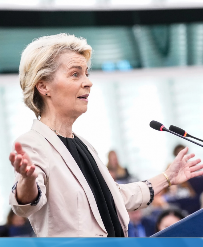 Борбената фон дер Лайен защити постиженията си и призова за единство, подчертавайки предизвикателствата, пред които е изправен ЕС, като например войната в Украйна. Тя посочи „ликуването“ на руския президент Владимир Путин от разклатеното единство на Европа и призова законодателите да отхвърлят предложенията, представени като „капан“.