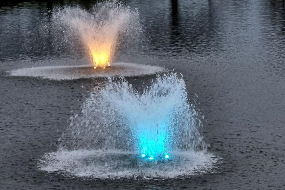 Основната им функция е да раздвижват и обогатяват водата с кислород, но в тъмните часове на денонощието оформят и красива цветна композиция.