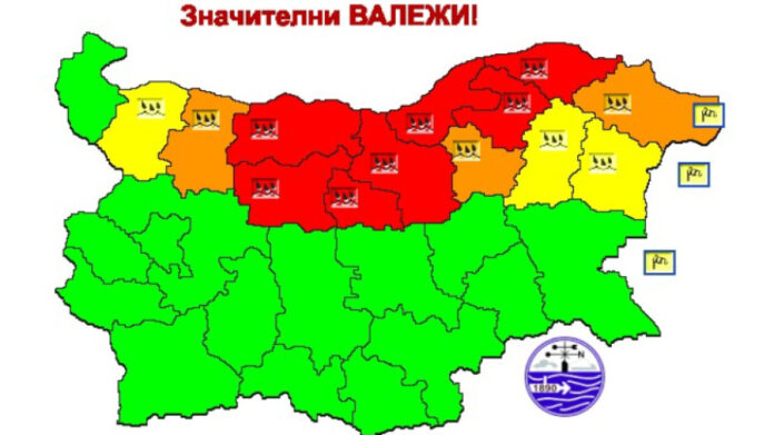 От Националния институт по метеорология и хидрология обявиха, че вдигат степента на опасност от „оранжев“ в „червен“ код за 7 области на страната.