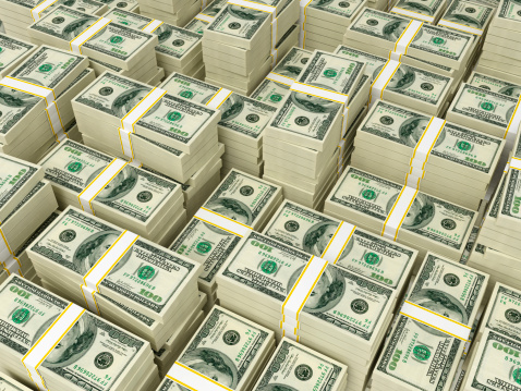 Hundred dollar bills money pile.